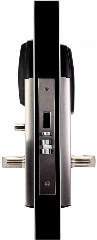 Электронные компоненты, батареи, антенна установлены в корпусе врезного механизма. Простое изменения режима замка с гостиничного на офисный делает удобным применение замка в служебных помещениях