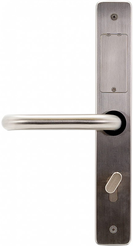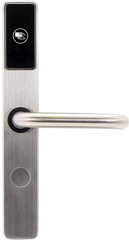 Электронные компоненты, батареи, антенна установлены в корпусе врезного механизма. Простое изменения режима замка с гостиничного на офисный делает удобным применение замка в служебных помещениях