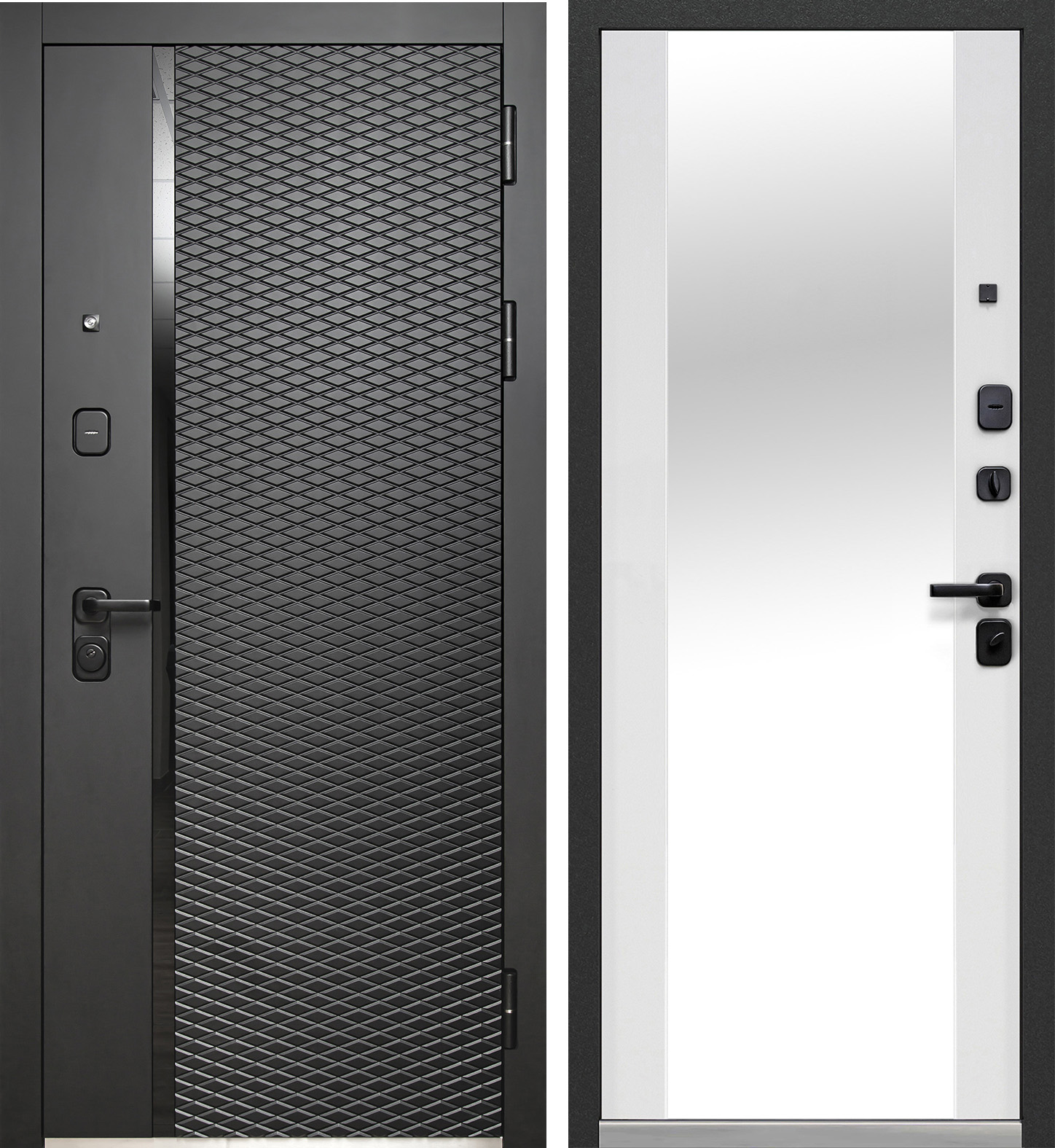 Входная дверь «LUXOR 2МДФ РОМБЫ ВЕРТИКАЛЬ/ЭМАЛИТ БЕЛЫЙ (ЗЕРКАЛО)» от компании Modern в Евпатории